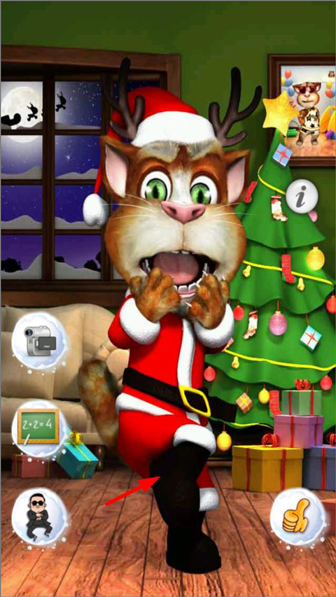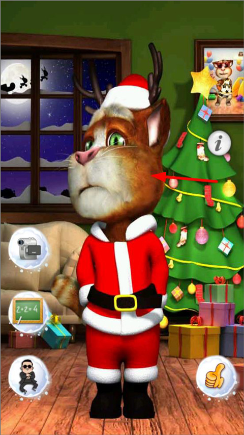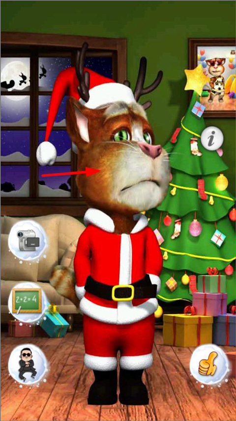 2、点击汤姆猫的左脸,会转头向右边;