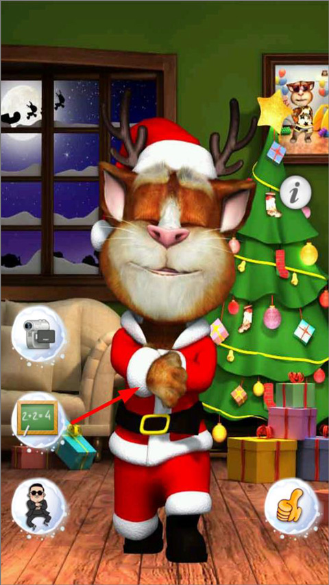 需有麦克风才能与汤姆猫进行对话。点击汤姆猫的身体和左右侧的按钮,小猫即可做出反应。点击话筒图标才可以让汤姆猫学说话。