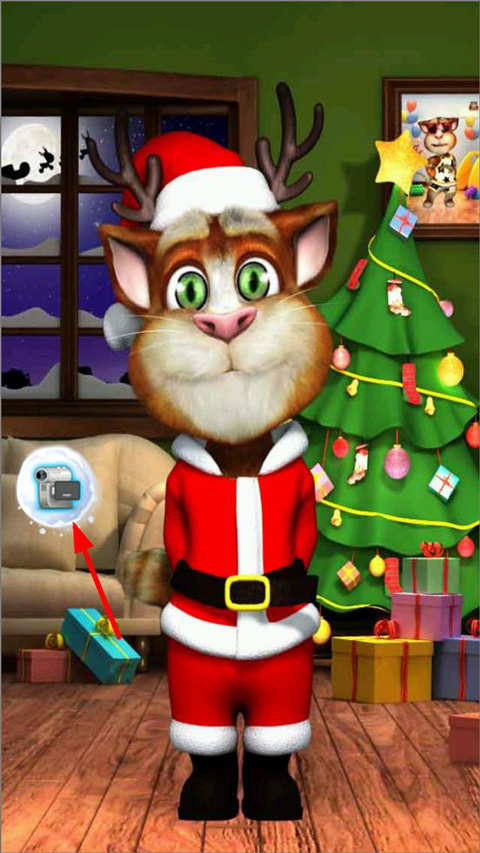7、点击相机按钮,可以给汤姆猫拍照或录视频并分享给好友;