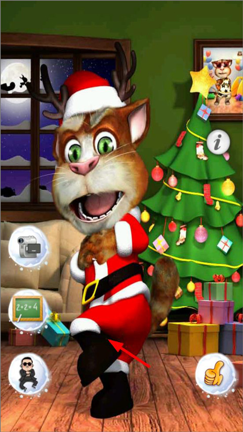 9、点击舞蹈按钮,汤姆猫会跟着音乐跳舞。