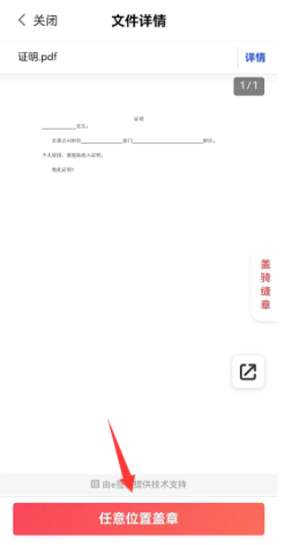 点击【任意位置盖章】,选择需要的企业印章,然后【提交签署】,完成意愿认证即可。