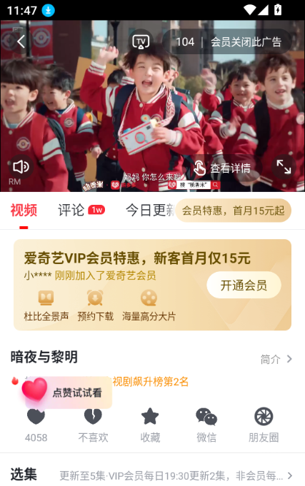 2、弹幕构建情感共鸣:“点我发弹幕” 功能支持实时评论,用户可同步分享观影感受,让单向观看升级为双向互动的 “文化社区”;