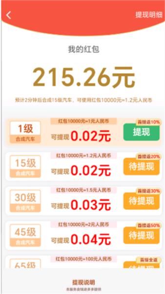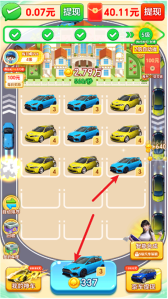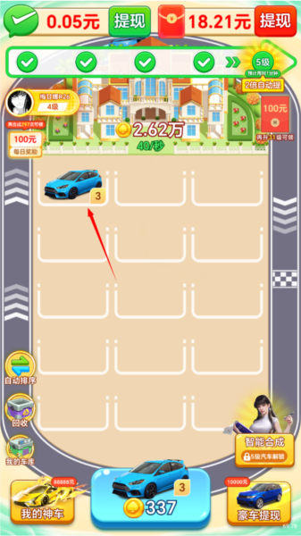 4、合成出的小车等级越高,能够获得的红包越丰厚。