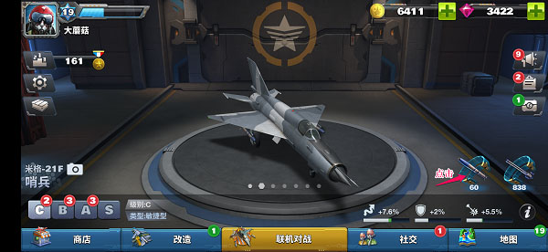 该游戏采用Unity引擎开发,具备主机级画质,完美还原真实高空战场与经典名机模型。核心玩法涵盖战队养成、实时对战等,支持1VS1、2VS2及多人竞技场匹配模式,搭配全自由目标锁定、自定义操控方式,兼顾操作手感与竞技公平性。同时提供重力感应与虚拟摇杆两种操作配置,玩家可通过划动屏幕完成横滚、眼镜蛇机动等特技动作,结合3D全景战斗视角,实现高流畅度空战体验。