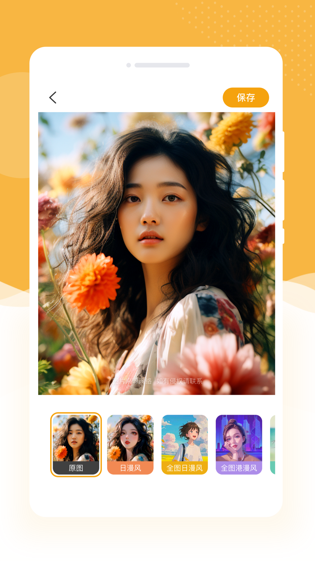 内置AI漫画滤镜,将人像照片转化为卡通风格,支持直接保存或分享至社交平台。