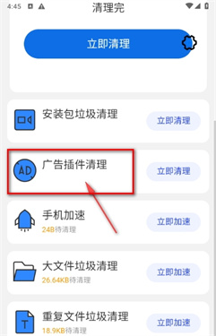 1.我们在主页选择广告插件清理