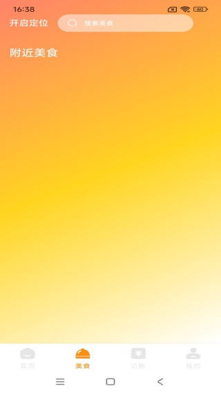 3、点击进入美食界面,开启定位,尽快快速微你推进附近美食。