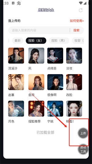 1、在首页点击长传即可同步到燕云十六声捏脸码大全攻略中来