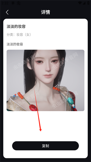 3、任意点击一个喜欢的捏脸查看,点击复制解开获取捏脸码