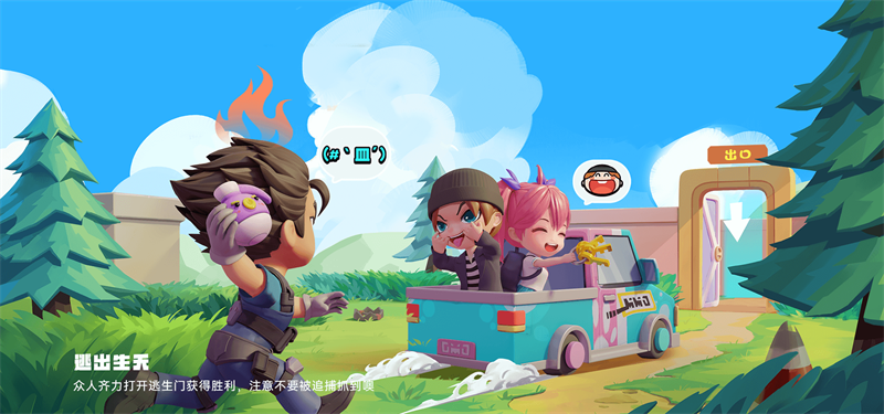 众人齐力打开逃生门获得胜利,注意不要被追捕抓到噢