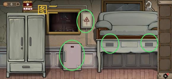 9、点击地球仪获得发光二极管,然后进入004室,在桌子上获得火钳,点击桌子左下角的密码箱,选中发光二极管安装后解锁小游戏(很不错的小游戏,要在6次机会内解锁密码。可以先输入12 34然后根据颜色来推断,黄色的可以调整位置。红色的数字就是没有的,把红色数字更换为后续数字)。通关小游戏后获得扳手。