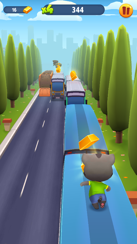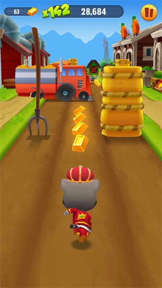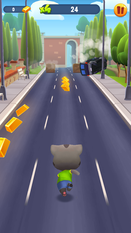 游戏的玩法就是比较传统的竖屏3D跑酷游戏,可以在游戏当中操控汤姆猫向前奔跑,躲避来自于城市街道的各类障碍物。并且在跑酷的过程中还需要尽可能的多筹集金块。