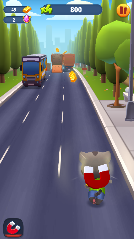 多样道具系统:磁铁吸金、护盾防撞、双倍金币……策略搭配,收益翻番!