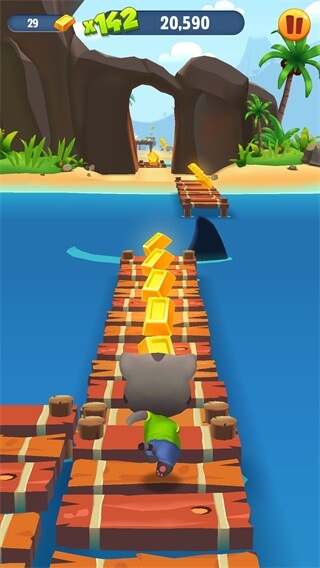 一路狂奔夺回宝藏,用金币为会说话的汤姆猫家族建造并升级梦幻家园。