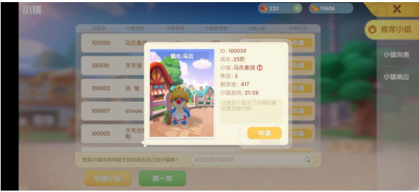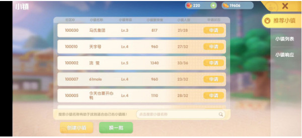 解锁“小镇”功能后我们在主界面的“好友”图标上方会出现一个“小镇”图标,我们可以通过这个功能申请加入其它小摩尔的小镇,或是自己创建小镇。