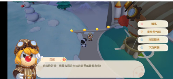当我们加入或创建好小镇之后,可以找贝琪乘坐热气球前往小摩尔加入的小镇。