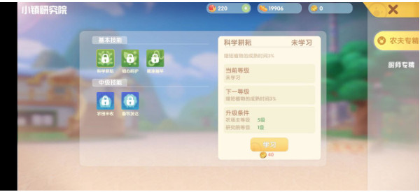 后续随着小镇等级的提高我们还能研究小镇科技,小镇科技可以给我们农夫、厨师2个职业提供各种buff加成。加成的项目也有各种各样,所以越早加入小镇我们升级农夫和厨师等级的效率越高,喜欢追求极限的小摩尔们要注意喽。