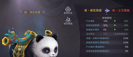 2、购买并升级小熊猫,如果可以的话最好聚魂小熊猫,聚魂后可以获得高额的杀怪经验加成比例,升级越早越好,失之毫厘谬以千里,让你惊艳比别人固定提升一大截。
