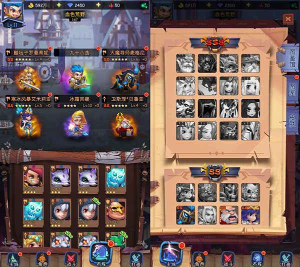 英雄合成靠运气:低阶英雄可通过合成进阶为高阶形态,欧气爆棚时甚至能直接解锁SSR级战力!
