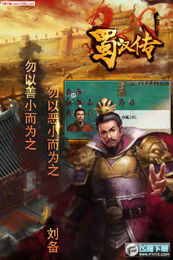 东汉末年,诸侯四起。北有枭雄曹操。南有霸王孙权。就是这么一个战乱不休的年代,却孕育了不朽的传奇。玩家将扮演刘备进入群雄相争的年代,点将布阵,强攻智取,收集宝物,培养武将。玩家通过剧情能了解到很多脍炙人口的三国历史事件,如桃园三结义、温酒斩华雄、三英战吕布、千里走单骑等等,在玩游戏的同时还能学到更多的历史知识。