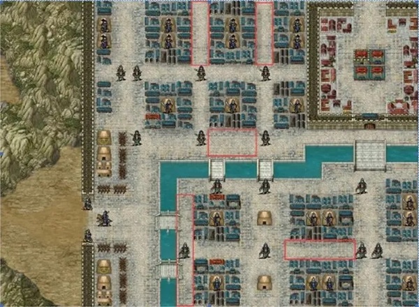 (34,3)、(34,3)、(31,4)、(31、4)、(26,5)、(25,9)、(27,9)、(30,8)、(26,12)、(26,12)、(26,13)、(28,13)、(32,13)、(37,14)、(38,15)、(34,15)、(30,15)、(32,16)、(32,20)、(26,20)、(25,22)、(22,18),然后一路向西,本关到达指定位置后还需要蔡瑁到达一定范围,不然不会过关。