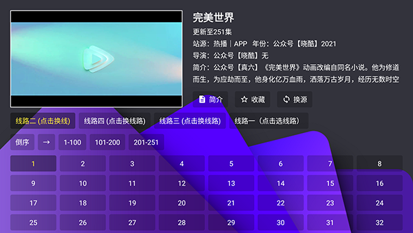 1、选择一个播放源进行播放,在播放界面如果卡顿或者无法加载可以切换线路。