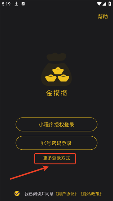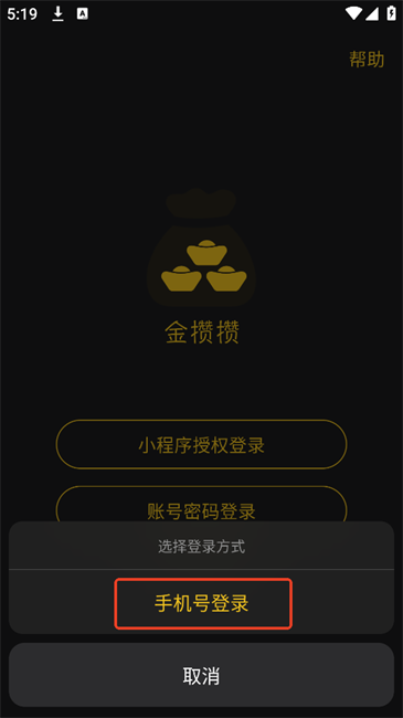 3.使用手机号登录金攒攒