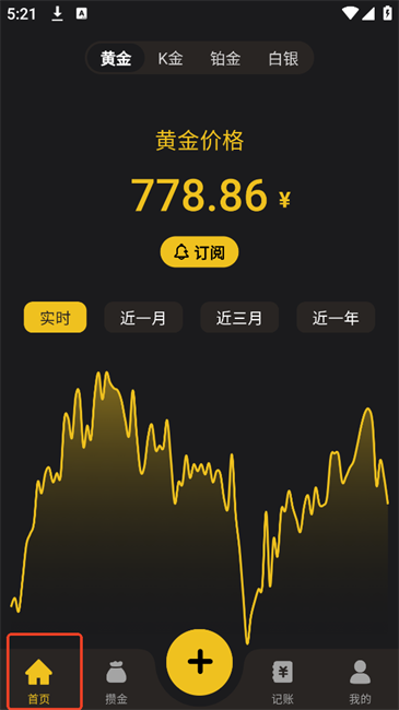 4.进入后可在【首页】查看实时金价或是近段时间的金价