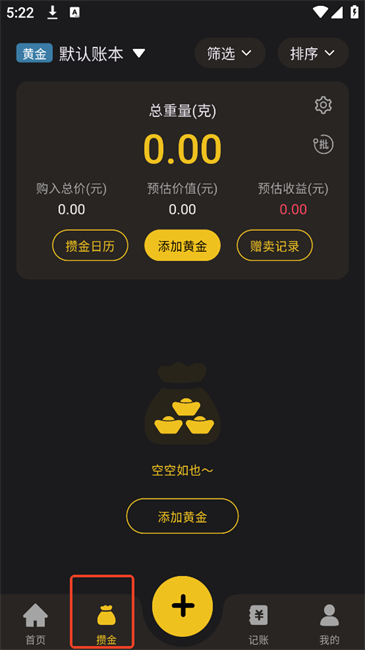 5.在【攒金】可添加已有黄金,添加黄金数量后支持查看收益