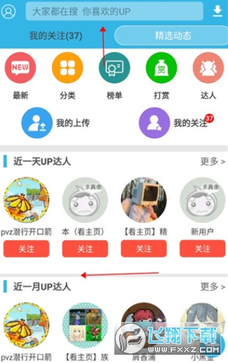 3、在这里就可以看到最近的各种UP排行,用户也可以自己搜索想要的UP主。