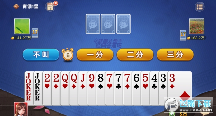 4、根据自己的牌选择是否成为地主,如果你的牌很好就可以选择三分