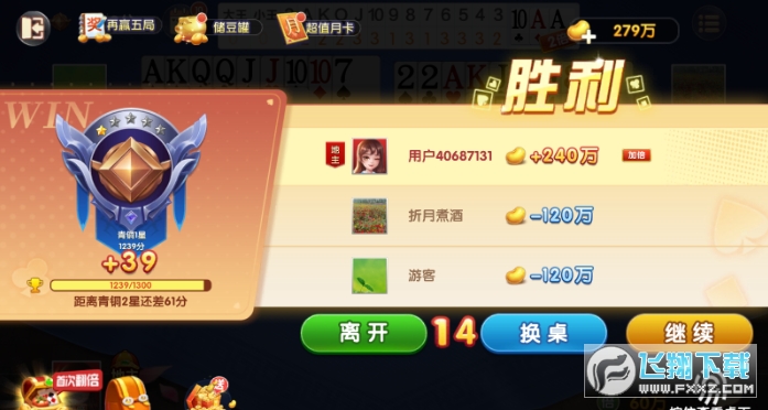 5、如图所示,当前已经对局完毕,获得240万游戏豆,直接继续游戏