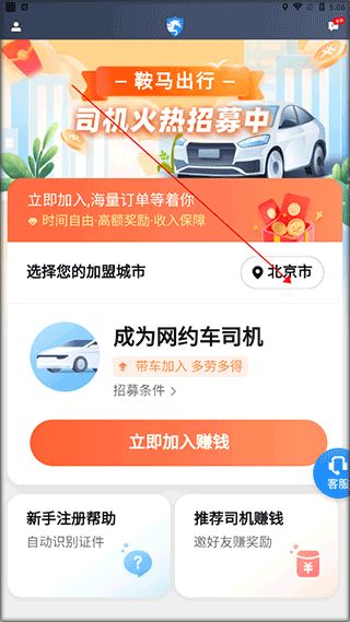 1、下载安装好鞍马司机端app,首先确认接单城市。