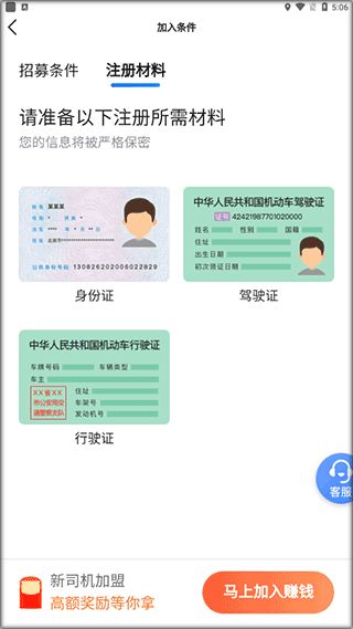 3、点击加入赚钱上传注册资料。