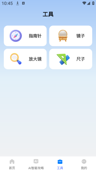 4、点击【工具】进入,可以免费体验指南针以及放大镜等功能。