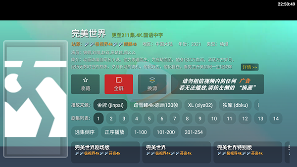 极视界4k可以应用在电视端使用的影视盒子,软件自带影视源接口,聚合了丰富全面的电影、电视剧与综艺资源,无论是热门院线大片、热播连续剧,还是爆款综艺、经典老片,都能在这里轻松找到,满足你多样化的观影需求。