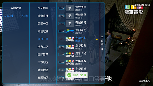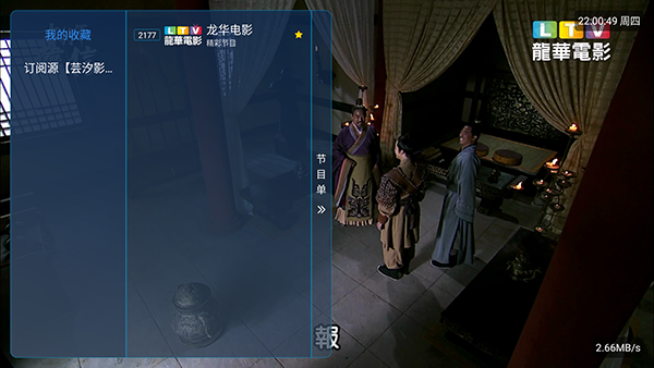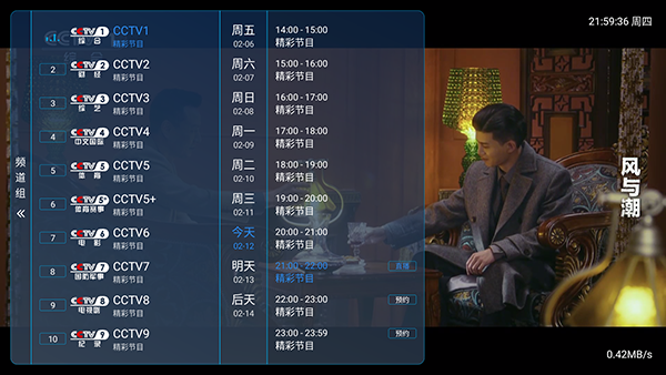 支持EPG节目预告、一周回看、频道收藏、自定义排序等实用功能,提升操控效率与体验