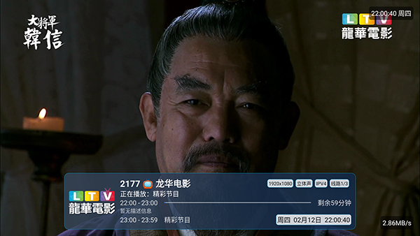 2、电视端用户使用遥控器按菜单选项可以唤起电视频道列表。
