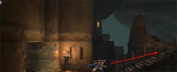 3、然后我们就到达此位置,在此借助这个木板往上走。