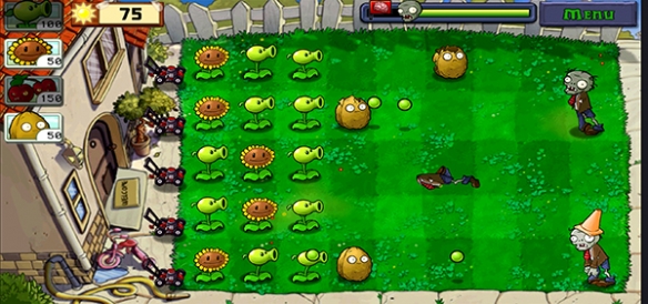 8、抵御每一波的僵尸的侵袭,直至胜利,胜利之后会解锁新的道具或者植物类型。