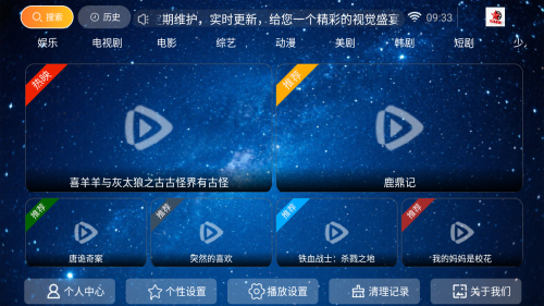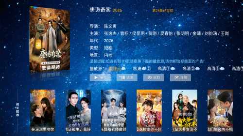 电视端界面简洁大气,遥控操作便捷,搭配高清输出,轻松打造家庭私人影院。
