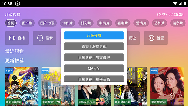 1、软件自带影视源接口配置,点击首页选项可以切换接口。