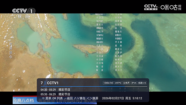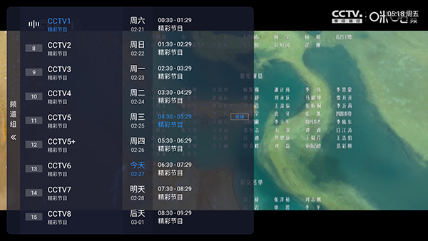 2、点击左侧屏幕或者使用遥控器按菜单选项即可唤起电视频道列表。