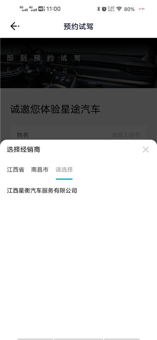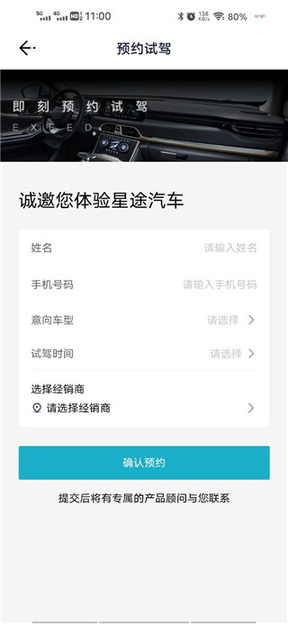 3、进入后输入自己的姓名和联系方式,然后选择车型和时间。