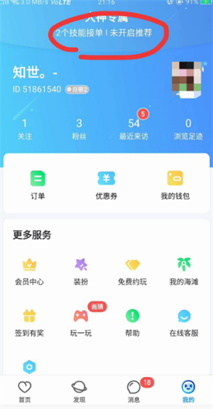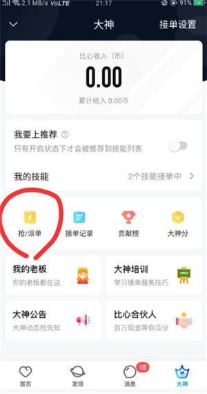 打开APP点击顶部技能位置,或者向下一拉找到接单页面
