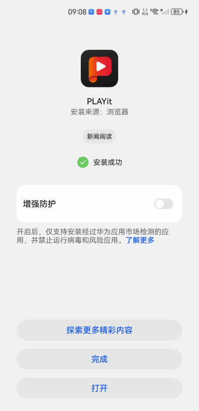 5、显示“安装成功”,点击打开,即可体验。(还可以点击下方探索更多精彩内容)