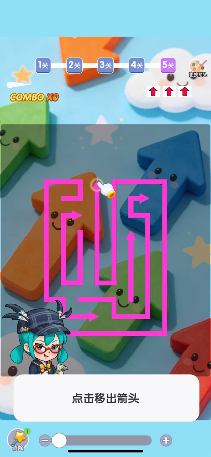 玩法简单易上手:核心操作仅为点击箭头,无需复杂操作技巧,新手玩家可快速入门,专注于解谜乐趣,适配全年龄段玩家。