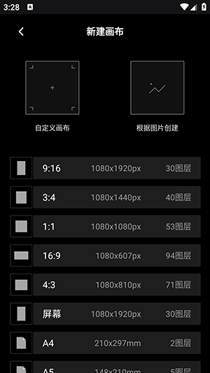 2、在创作工具界面,选择自己需要的画布尺寸与样式。