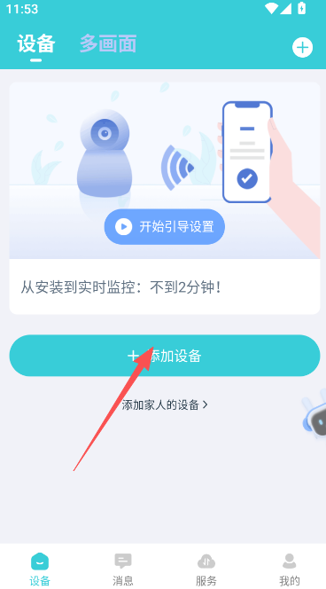 2、选择添加所购产品设备或是添加家人的监控设备。