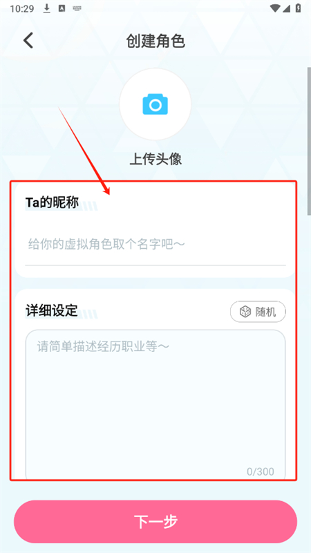 2.输入昵称,设定角色外貌、性格、职业